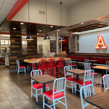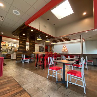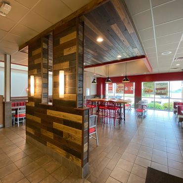 Modern woodworking brought this Arby's into the 21st century with rich wood tones, creative framing, and signage.